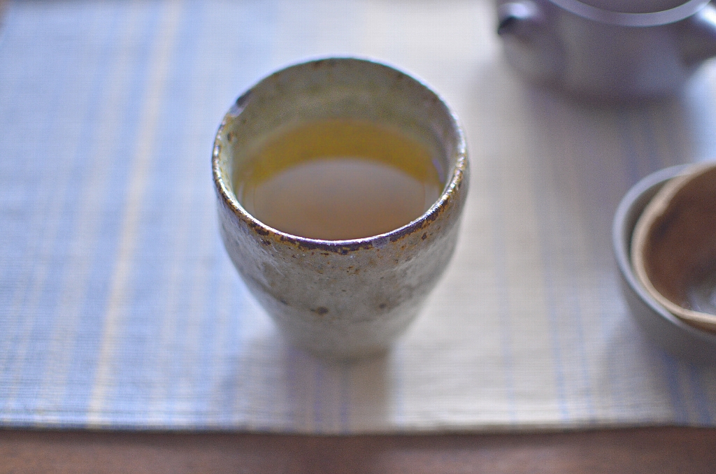 最初にお会いしたのが2年前の2012年。その時はお茶摘み前の5月初旬だったので、いただいたお茶は2011年の6月のものでしたが、なんともいえない、釜炒り茶らしい落ち着いた香りが印象的でした。そして今年はできたてのものをいただいて、熟し始める前とはいえ、4煎でも続く甘さ、ほどよい渋み、苦さはなく、香りはまさに青柳製の香りという、組み立てがはっきりしたお茶です。秋になったらまた違った良さが浮かんでくると思いますが、今は若く、そしてバランスの良い釜炒り茶だなぁという印象。おいしいです。